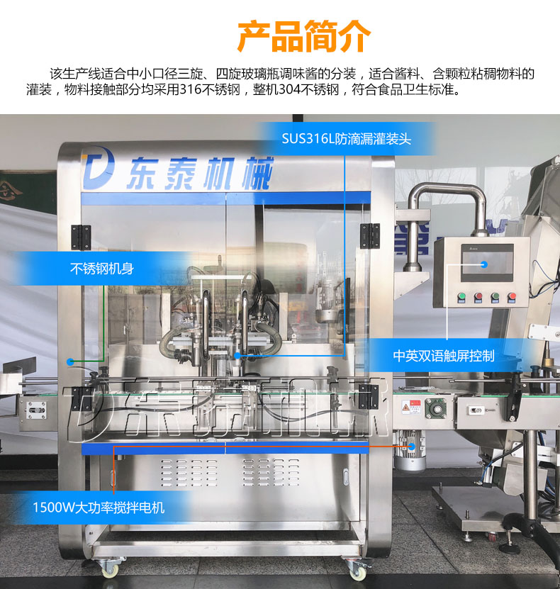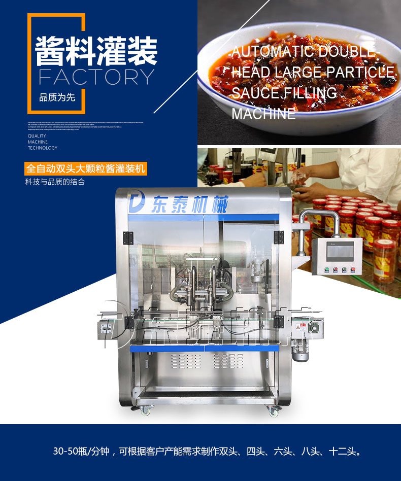 隨著機(jī)械技術(shù)的快速發(fā)展灌裝機(jī)的發(fā)展也是日新月異,使得其種類比較多。蘸醬在我國(guó)擁有悠久的歷史,在我國(guó)烹飪中占有著重要的地位,發(fā)展到現(xiàn)在在做菜和食品中也不可或缺,巨大的市場(chǎng)使得蘸醬灌裝機(jī)擁有巨大的市場(chǎng),醬類廠家在引進(jìn)設(shè)備時(shí)都想采購到高效率、適合自己的蘸醬灌裝機(jī)械。人們對(duì)食品要求的提高使得醬類生產(chǎn)廠家迎來了較大的變格,安全衛(wèi)生是非常重要的標(biāo)準(zhǔn),因此對(duì)蘸醬灌裝機(jī)的選擇也更加的要求嚴(yán)格,許多傳統(tǒng)的機(jī)械已經(jīng)不能滿足企業(yè)高標(biāo)準(zhǔn)、高效率的要求。因此選擇一款適合的蘸醬灌裝機(jī)械產(chǎn)品顯得尤為重要。