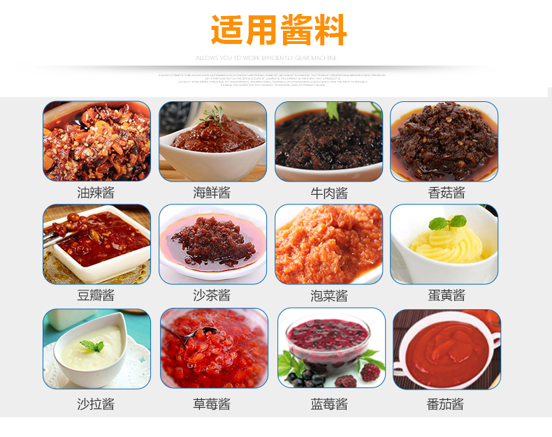 辣椒醬做為一種調味品,已經成功走進了人們的日常生活,并占有了很重要的地位。辣椒醬不僅可以單Du食用,還可做為調味品,增加菜肴的味道于色彩。辣椒醬不僅可以開胃,還能預防多種疾病的發(fā)生,因此受到了極大的歡迎,市場需求量很大。而辣椒醬包裝一般是在瓶裝等,方便儲存,其中自然少不了灌裝機的出現(xiàn)和幫助,同樣的辣椒醬的熱銷另一方面也推動了灌裝機的應用和發(fā)展。接下來我們一起看一款“性價比”和“物美價廉”同時兼容的一款顆粒醬灌裝機到底有什么厲害?