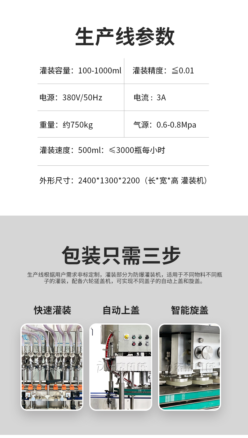 電子量杯感應直列式灌裝機,是目前國內液體灌裝的高端產品,自動化程度高,灌裝計量精確,適用于塑料瓶、玻璃瓶等各種幾何形狀的瓶型的不含氣體的酒水、飲料、調味品及其他溶液的定量灌裝。機器采用觸摸