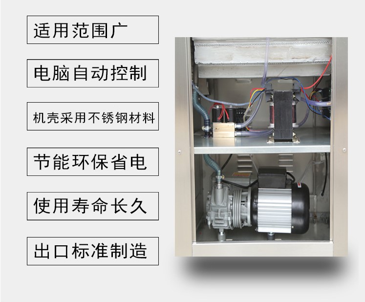 架體采用國際標(biāo)準(zhǔn)食品用304不銹鋼板,強(qiáng)度高,不易破損,它獨(dú)特的傾斜臺面設(shè)計(jì),可以保證產(chǎn)品內(nèi)的水份不流失,從而使產(chǎn)品的含水真空包裝更易操作。